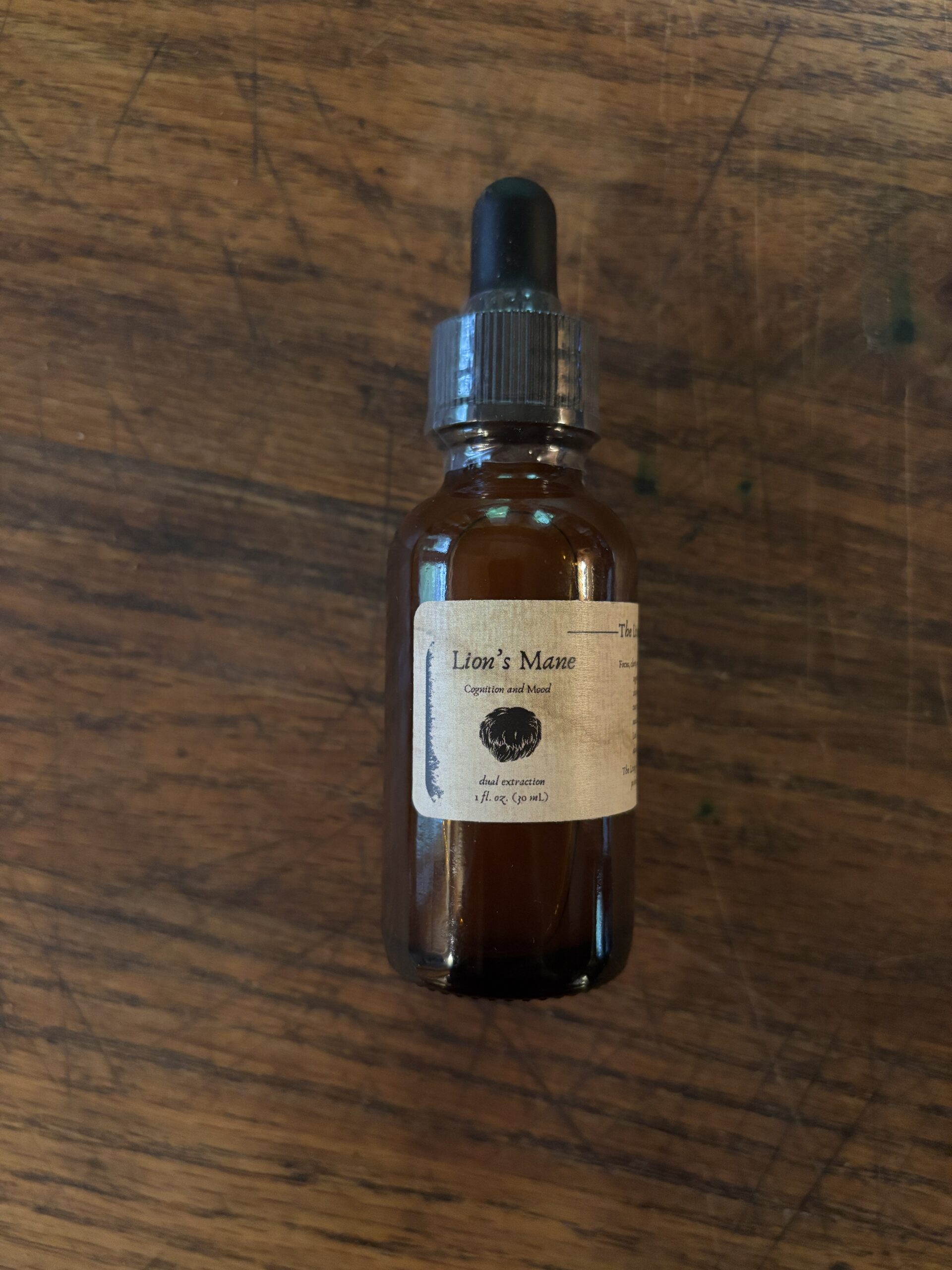 Dual-extracted Lion’s Mane tincture for clarity and focus. 1oz dropper bottle.